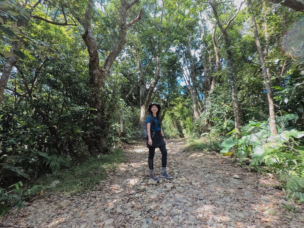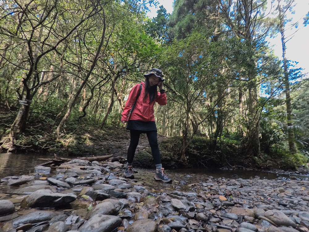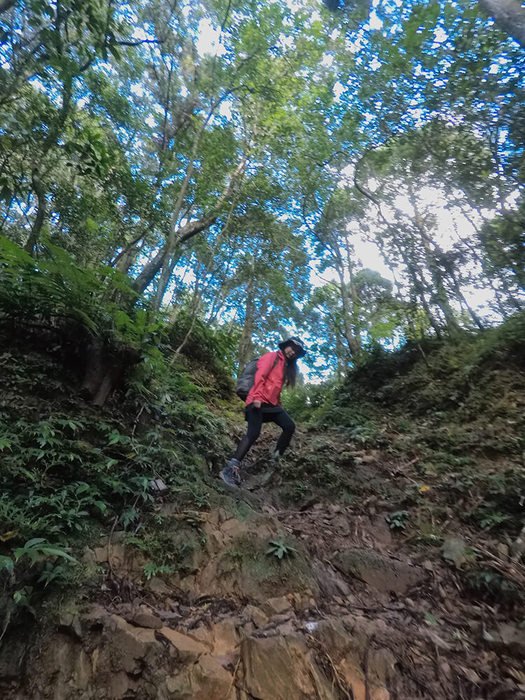 與一般運動休閒鞋最大的差別就在於 OUTline 搭載的 Salomon 專利 Contagrip® 抓地耐磨橡膠大底,5mm 深的鞋底紋路與專為輕量戶外健行所設計的齒紋分佈與形狀,在好天氣下行走於小粗坑石礫混雜的土路、以及淡蘭古道的泥土路與泥濘處,與地面接觸的穩定抓地力感,讓我放心地將身體重心交付給這雙夥伴。